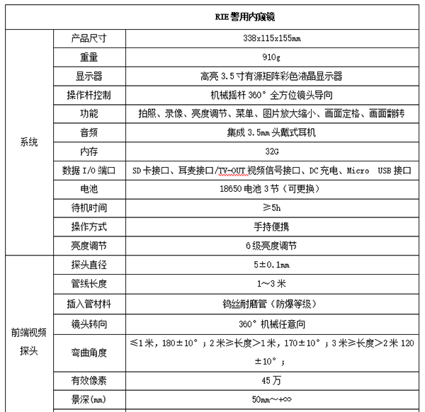RIE-IR系列超遠距夜視警用雙光內窺鏡