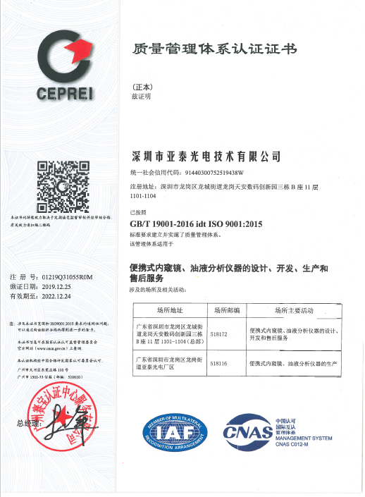 亞泰光電首頁  >>  走進亞泰  >>  亞泰光電資質榮譽  >>   企業資質  >>  ISO9001質量管理體系認證證書