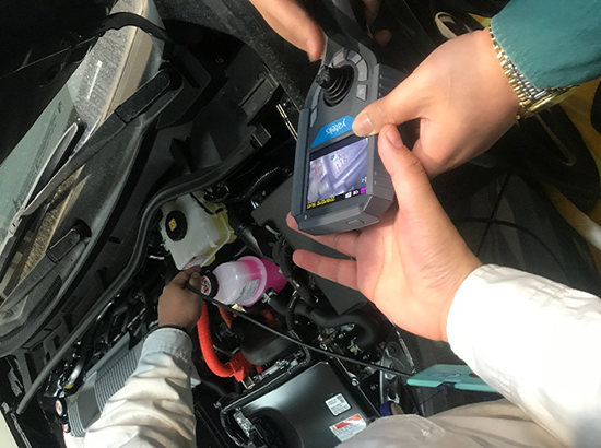 1.總裝使用的科室為[質(zhì)量管理科],汽車完成裝配出庫的時,需要記錄發(fā)動機(jī)上面的標(biāo)碼,現(xiàn)場演示時中方的技術(shù)員與合資方技術(shù)員對亞泰光電MIE615工業(yè)內(nèi)窺鏡像素非常滿意,技術(shù)人員現(xiàn)場拿手機(jī)把亞泰內(nèi)窺鏡品牌、型號都拍了下來。