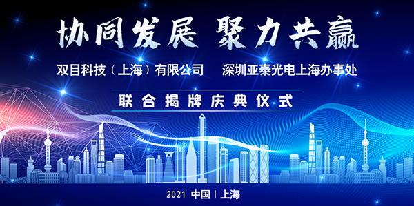 2021年3月27日,由深圳市亞泰光電技術有限公司主辦的“協同發展 聚力共贏”暨雙目科技(上海)有限公司、深圳亞泰光電上海辦事處聯合揭牌慶典儀式在上海市松江區新雅科創園順利舉行。