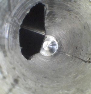 客戶地處華南區(qū),主營(yíng)手機(jī)、電池、電腦配件等相關(guān)配套部件,客戶方用內(nèi)窺鏡檢測(cè)的是其生產(chǎn)的鋁合金機(jī)加工件,用于手機(jī)后蓋壓模用,客戶生產(chǎn)手機(jī)后蓋時(shí),會(huì)用到磨具,他們內(nèi)部稱鋁合金機(jī)加工件,上面交錯(cuò)孔大小不一,主要用內(nèi)窺鏡看內(nèi)部的破孔處毛刺等情況。