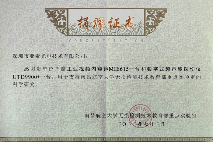 真情捐贈儀器,助力院校發(fā)展——深圳亞泰光電向南昌航空大學(xué)捐贈兩臺無損檢測設(shè)備