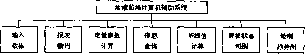 典型的油液監測計算機輔助系統由數據輸入、報表輸出、信息查詢、定量參數計算、基線值計算、磨損狀態判別趨勢圖的繪制等模塊組成,系統結構如 圖1.1所示。