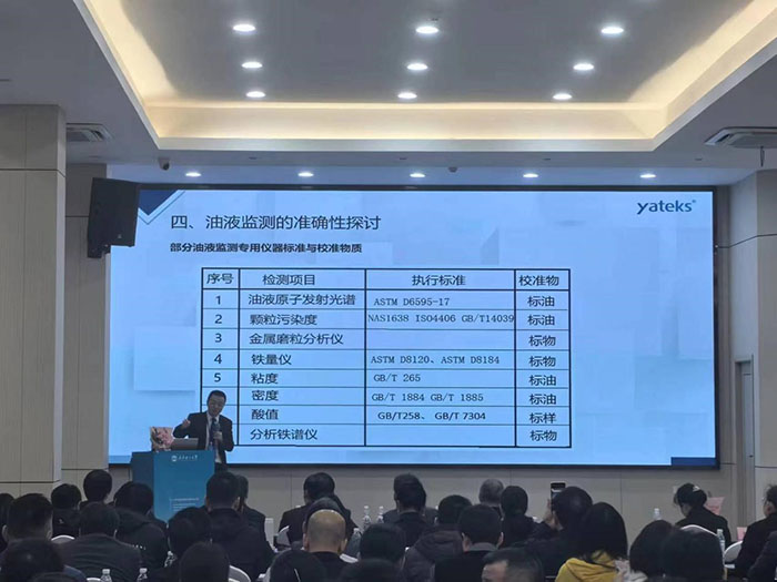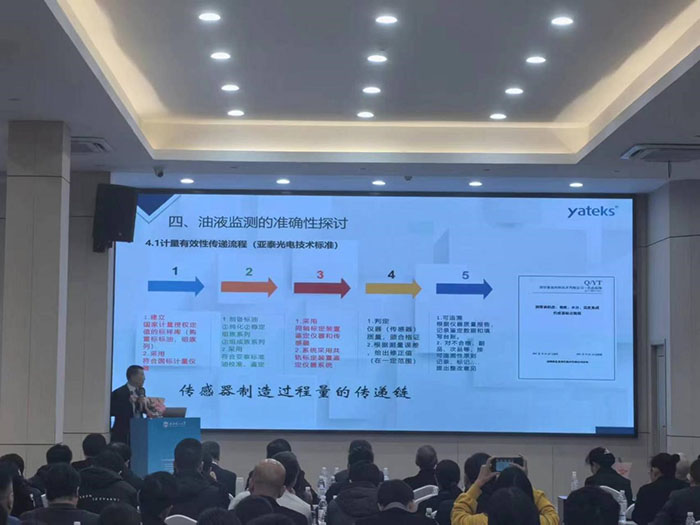 此次會議通過專題報告,如油液傳感器應用實踐、油品分析儀研發(fā)、油液監(jiān)測大數據、設備潤滑等不同領域維度和技術交流以及參觀學習的形式舉行,深圳市亞泰光電技術有限公司鄭總在會上做了油液監(jiān)測的準確性探討的專題報告,報告從金屬磨粒分析儀、原子發(fā)射光譜、顆粒污染度等部分油液監(jiān)測專用儀器標準與校準物質;油液傳感器計量有效性傳遞流程等維度做了闡述。