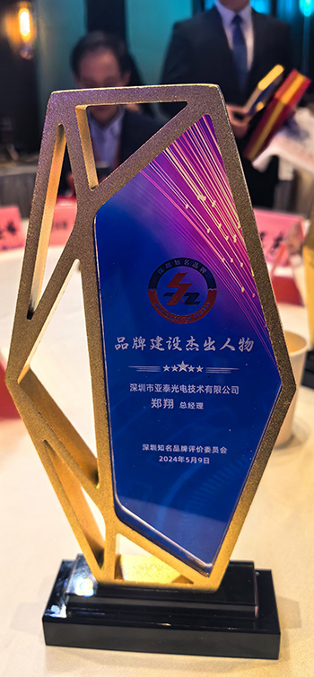 7:00 PM,國際品牌周之2024品牌領(lǐng)袖之夜在深圳廣電金融中心舉行,亞泰光電總經(jīng)理鄭翔獲評(píng)“品牌建設(shè)杰出人物”獎(jiǎng)項(xiàng)。