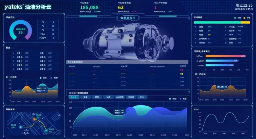 亞泰光電油液監測系統通過搭載高精度傳感器和物聯網技術,實時采集油液的溫度、粘度、含水量、金屬顆粒濃度等關鍵指標,結合AI算法進行動態分析,精準捕捉設備異常信號。無論是發動機的早期磨損、液壓閥的微小泄漏,還是油液氧化導致的性能下降,系統都能在故障發生前發出預警,讓運維從“被動搶修”轉向“主動防護”。