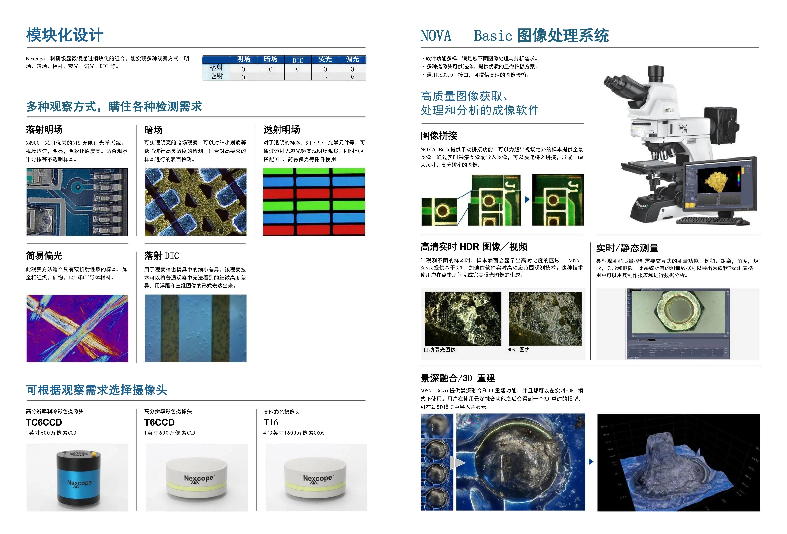 Nexcope   YT920系列顯微鏡采用模塊化設計,可實現明場、暗場、微分干涉、熒光、偏光等觀測方法。是半導體器件、 FPD、 電子器件、材料、精密模具制造的質控和研究的理想工具。